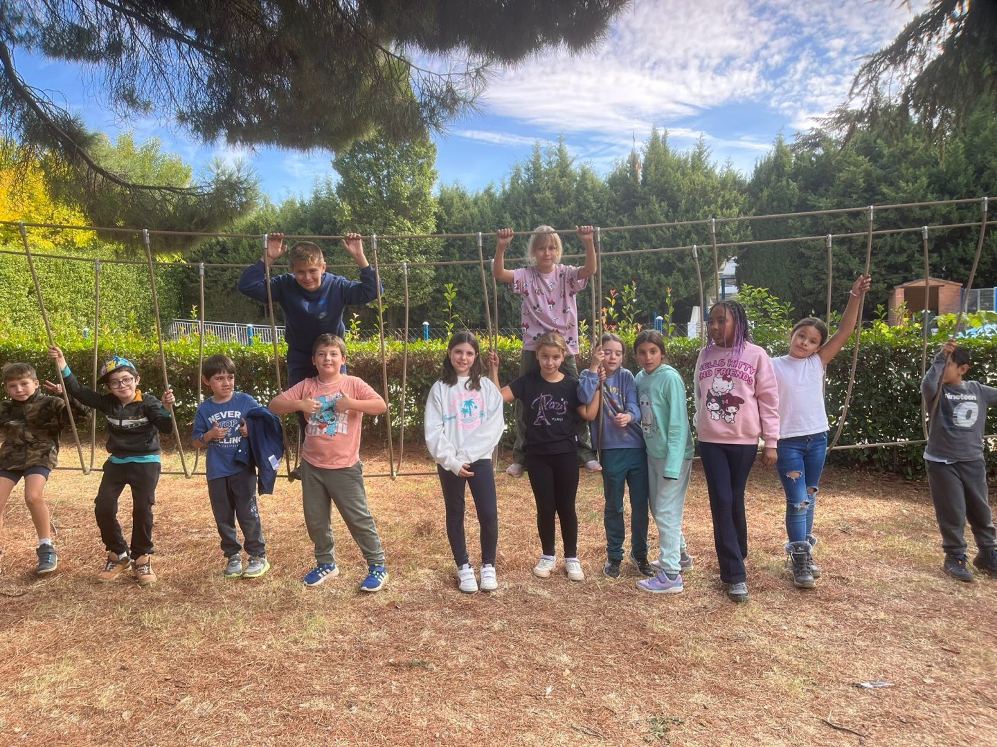 Por la tarde, jugamos al Catán en el bosque, una divertida versión del famoso juego de estrategia, donde tuvimos que conseguir recursos y cooperar para construir y ganar. ¡Nos lo pasamos genial entre risas y naturaleza! 🌲🏕️