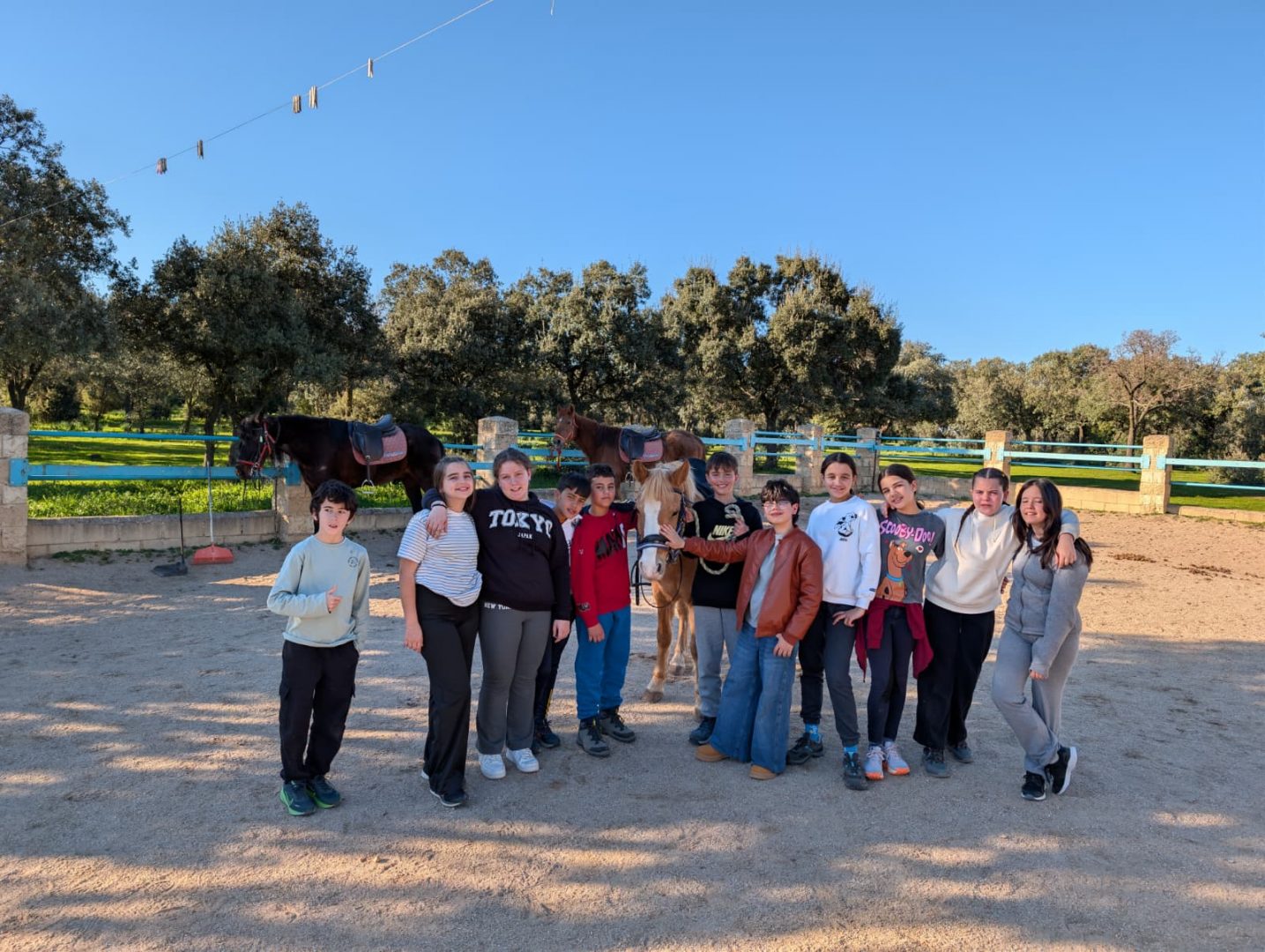 Después de comer montamos a caballo, una de las actividades más esperadas. Aprendemos a relacionarnos con los caballos con calma y respeto, siempre en un entorno seguro y supervisado. 🐎💚