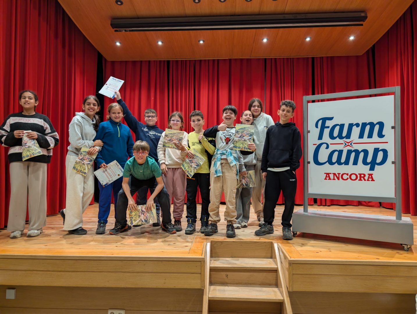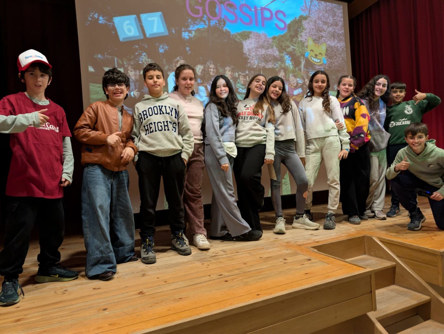 Por la tarde llega un momento muy especial: representamos las News en el teatro. Nos subimos al escenario con mucha ilusión y mostramos todo el trabajo que vamos preparando, ganando confianza y disfrutando del aplauso de los compañeros. 🎭🌟