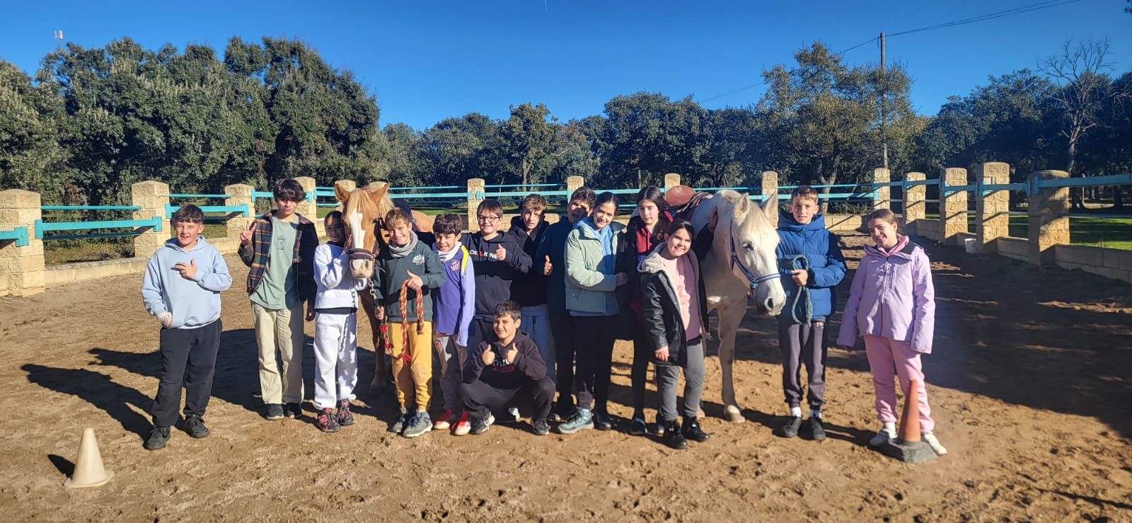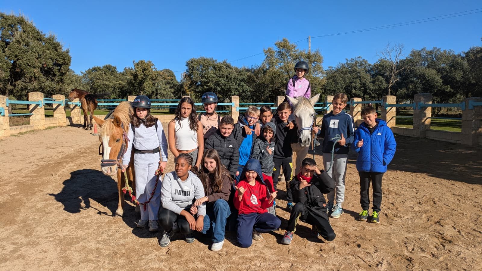 Para cerrar la mañana disfrutamos de una de las actividades más esperadas: montar a caballo. Aprendimos a cuidarlos, guiarlos y disfrutamos de un paseo precioso por los alrededores de la granja. ¡Un momento mágico para muchos! 🐎💚