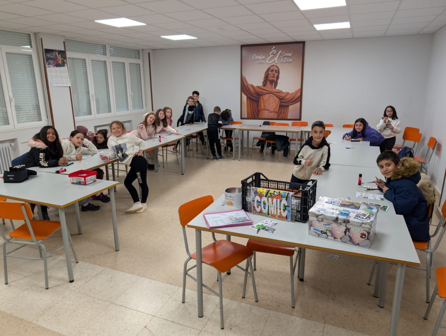 Durante la mañana, antes de comer, realizamos varias actividades. Empezamos con News, donde seguimos preparando el noticiero que representaremos en el teatro. Los niños han estado ensayando y organizando sus ideas con mucha creatividad, trabajando la expresión y el trabajo en equipo. 🗞️🎭