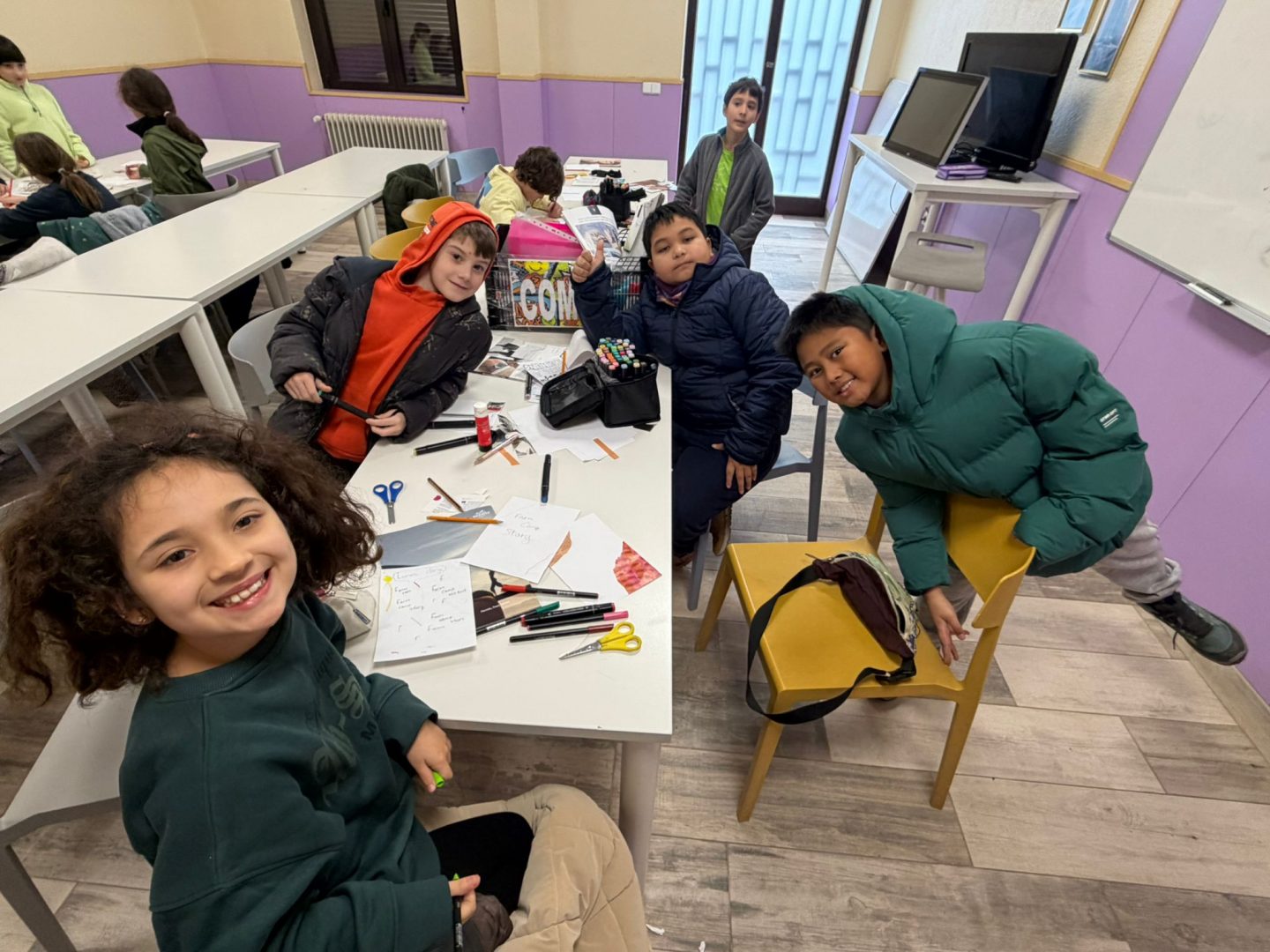 Por la mañana comenzamos con el taller de cómic, donde dimos rienda suelta a la imaginación creando historias, personajes y viñetas llenas de color y creatividad. Fue un momento tranquilo y muy enriquecedor. 🎨📚✨
