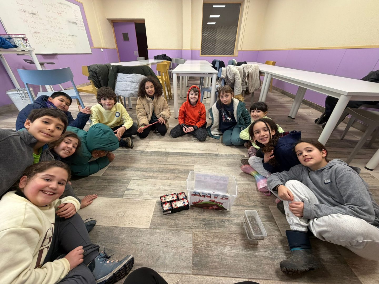 Para cerrar la mañana realizamos la clase de Ants (hormigas), donde aprendimos cómo se organizan y trabajan en equipo, relacionándolo con valores como la colaboración y el esfuerzo común. 🐜✨