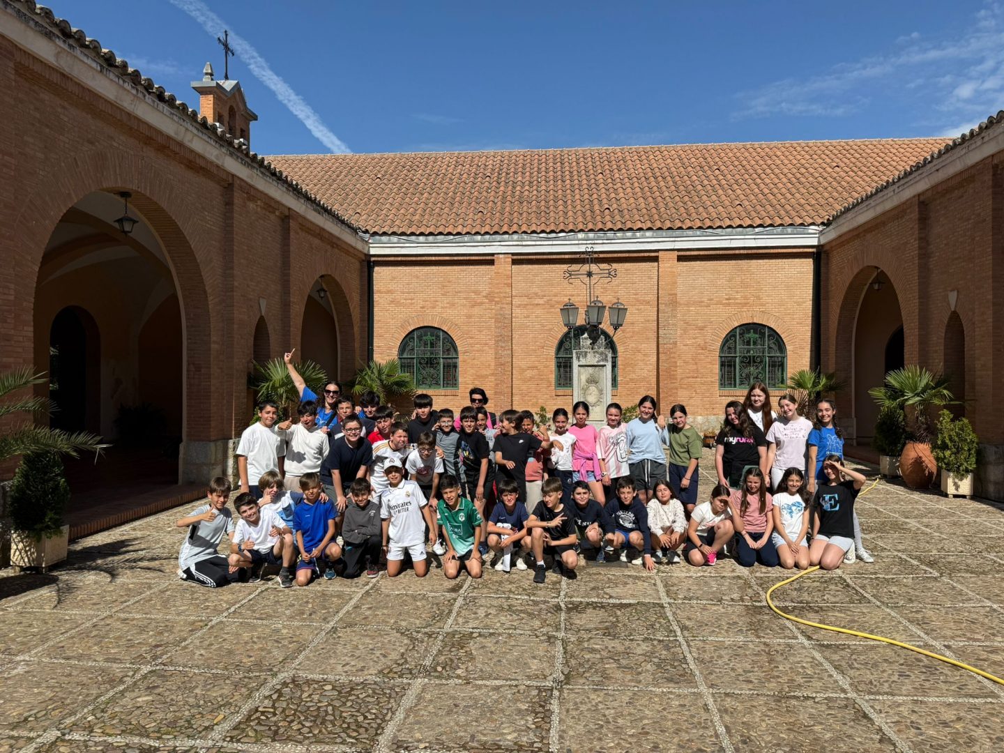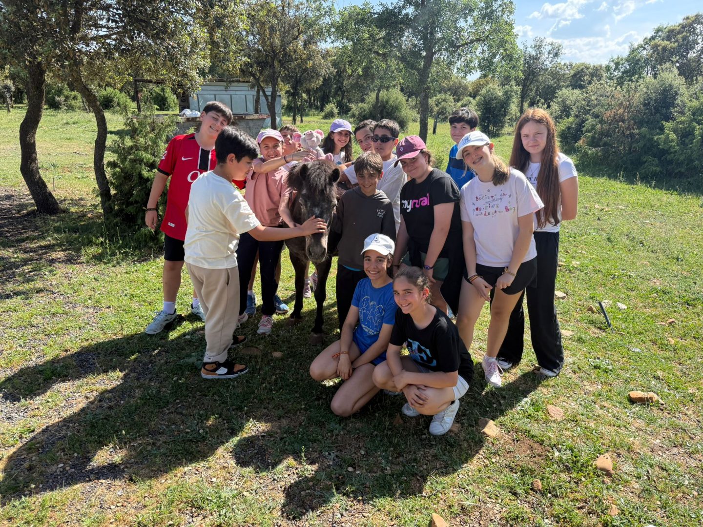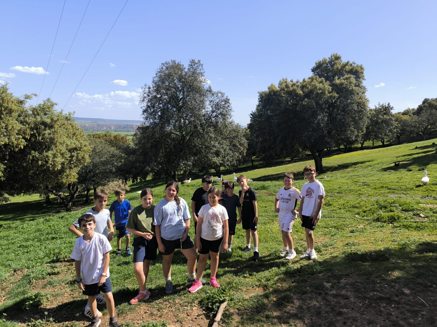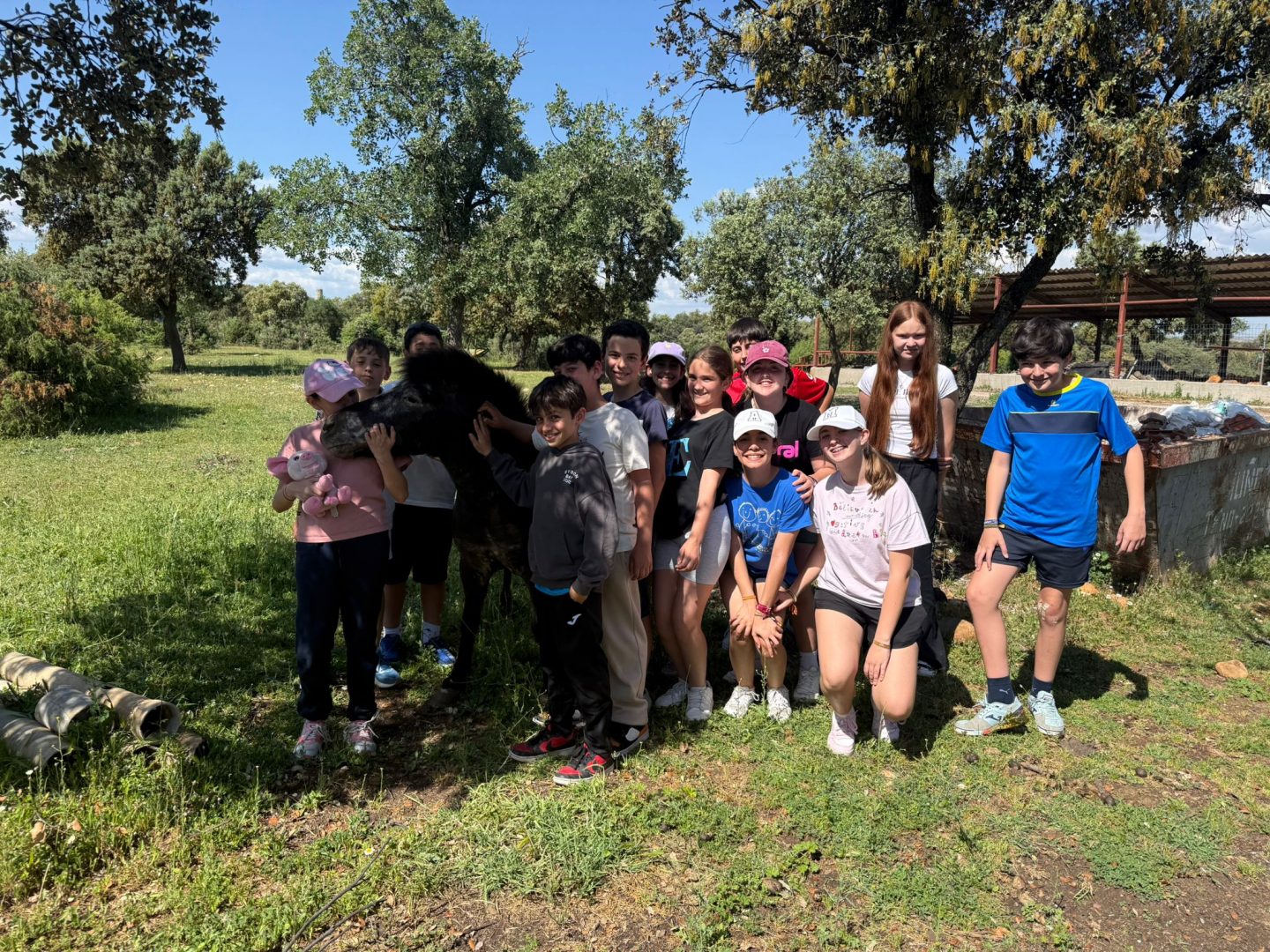 La tarde ha estado cargada de actividad y mucha energía; primero, hemos tenido la oportunidad de visitar a algunos animales de la granja 🐑🐷, aprendiendo curiosidades sobre ellos y disfrutando de su compañía en este entorno tan especial. Para no perder el ritmo, hemos continuado con una movida sesión de aeróbic 🏃♂️💨, donde hemos bailado y estirado los músculos al aire libre con una sonrisa de oreja a oreja. Ha sido fantástico ver cómo el grupo empezaba a conectar y a usar el idioma de forma espontánea mientras compartíamos estas primeras experiencias bajo el sol.