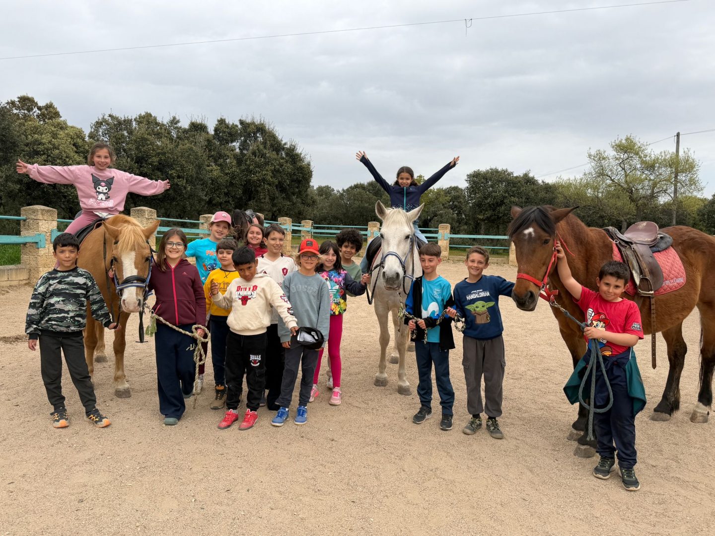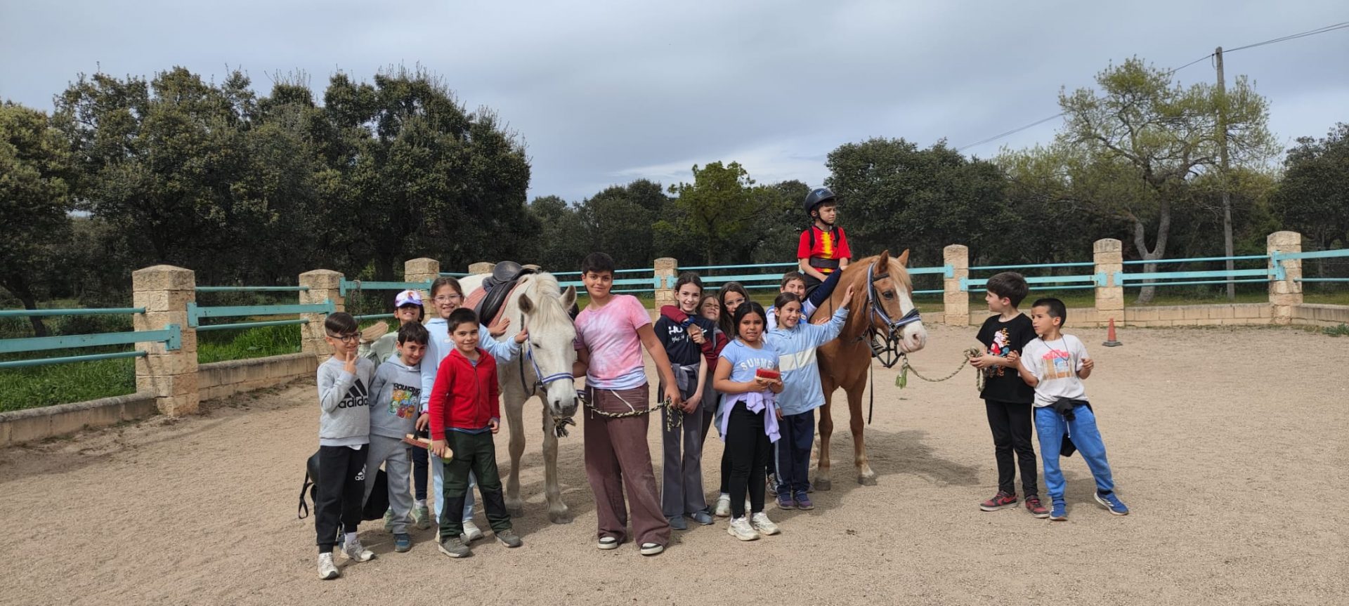 A la hora de comer, nos hemos deleitado con unos macarrones con tomate y albóndigas, y al terminar, hemos ido a conocer y montar a los caballos.