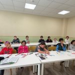 Después de comer nuestros mayores han empezado con el guion de sus noticias que representaran en el teatro el último día.