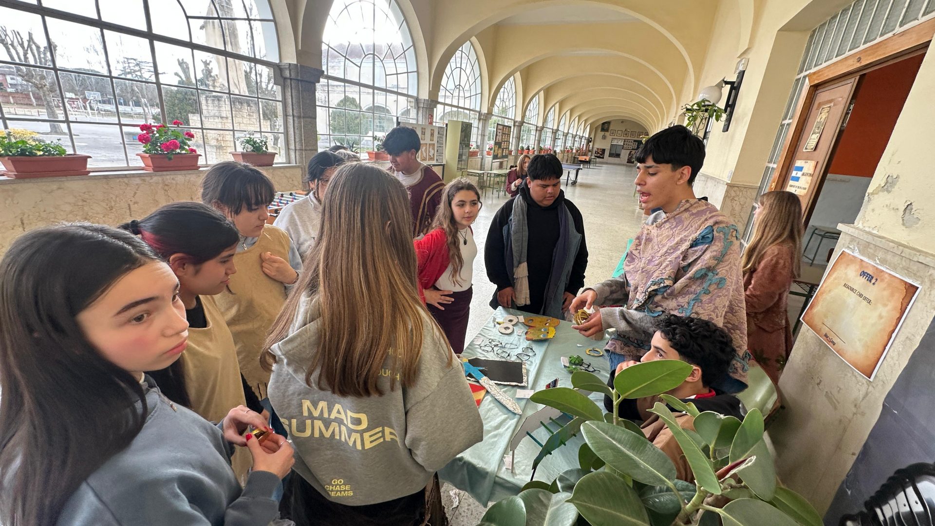 Por la tarde, la historia cobró vida: los alumnos se sumergieron en el reto de Cristóbal Colón, utilizando juegos y dinámicas para entender cómo negoció con los Reyes Católicos. 🏰 Divididos por roles, tuvieron que gestionar su propia empresa, comprando materiales estratégicos y vendiendo sus suministros para asegurar el éxito de su misión. 💰💼
