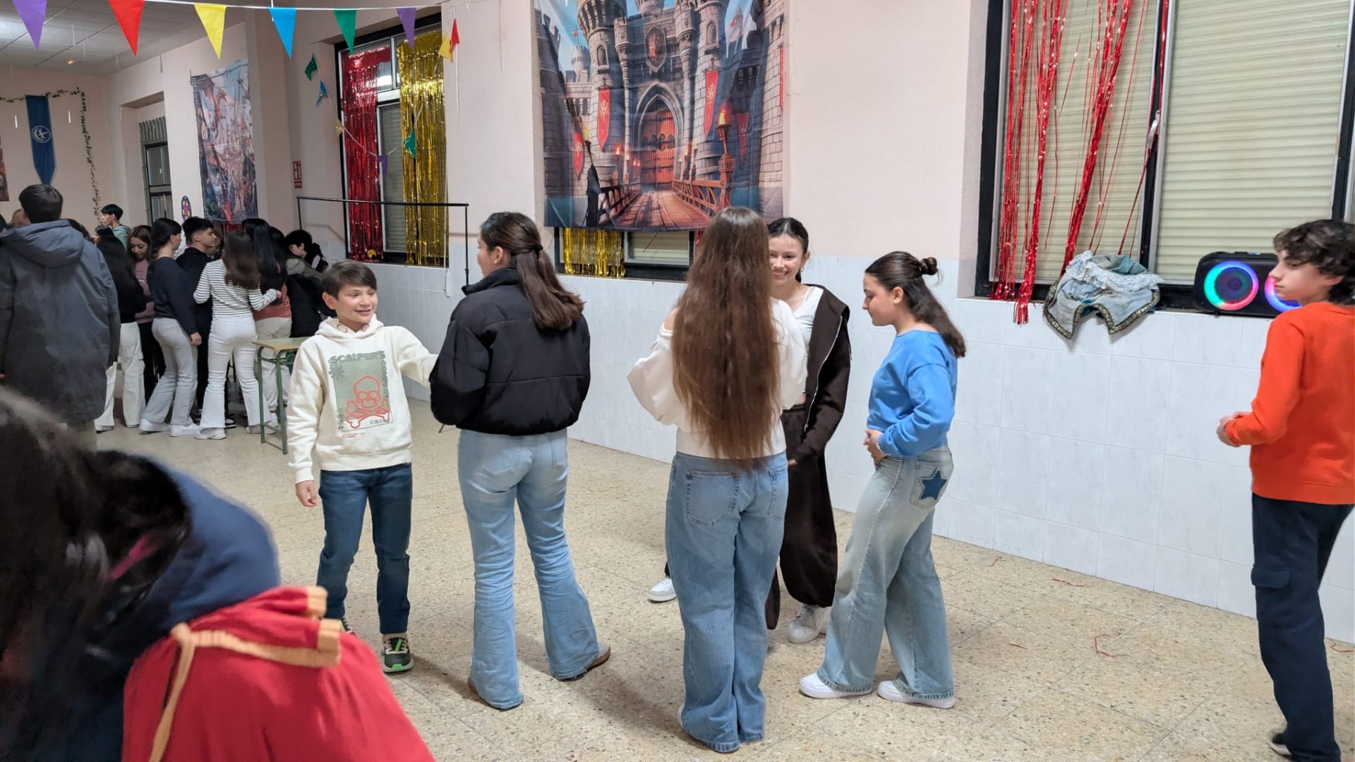 ¡Y para terminar por todo lo alto… fiesta total! 🎉 Cenamos alitas y nachos en una velada con aire medieval y nos pusimos guapos para la discoteca y el show final. 🎶🎤 ¡Risas y bailes para una despedida de película! 🎬💖
