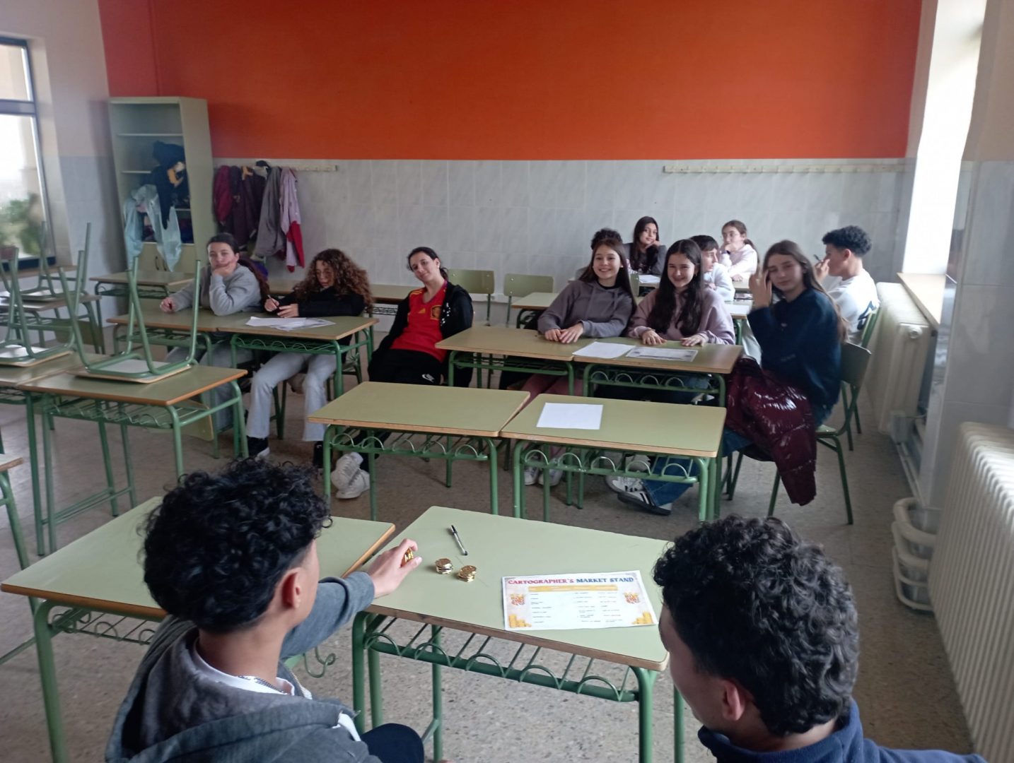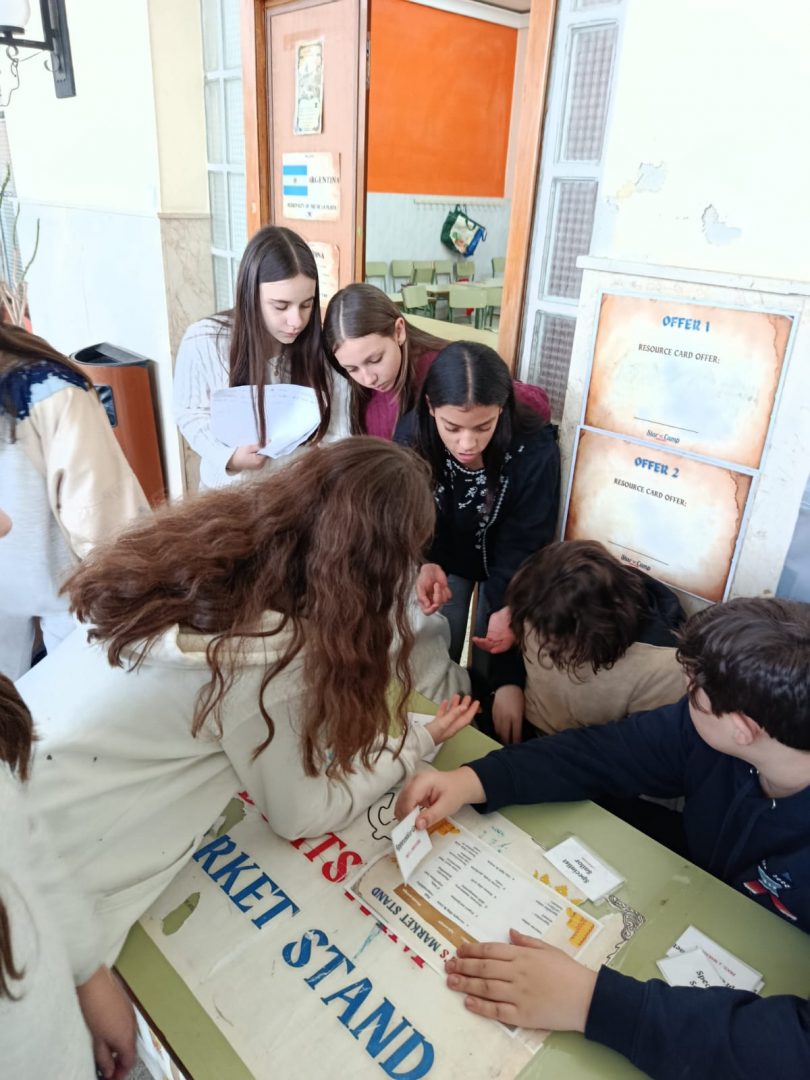 Por la tarde, la historia cobró vida: los alumnos se sumergieron en el reto de Cristóbal Colón, utilizando juegos y dinámicas para entender cómo negoció con los Reyes Católicos. 🏰 Divididos por roles, tuvieron que gestionar su propia empresa, comprando materiales estratégicos y vendiendo sus suministros para asegurar el éxito de su misión. 💰💼