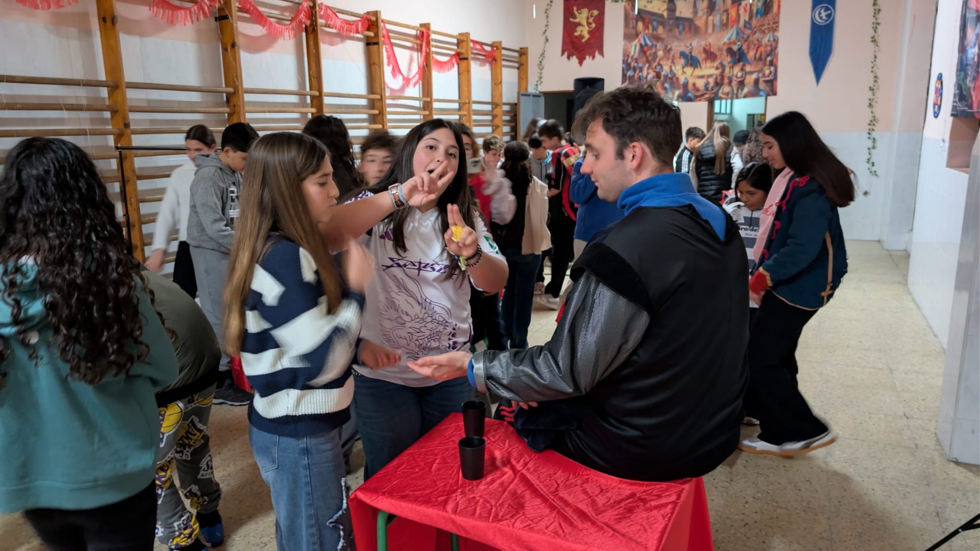 El broche de oro llegó por la noche con una cena medieval de alitas barbacoa y nachos con queso 🍗🧀, seguida de la gran discoteca final. 💃🕺 ¡Una fiesta llena de música y sonrisas para cerrar una jornada inolvidable! 🎊✨