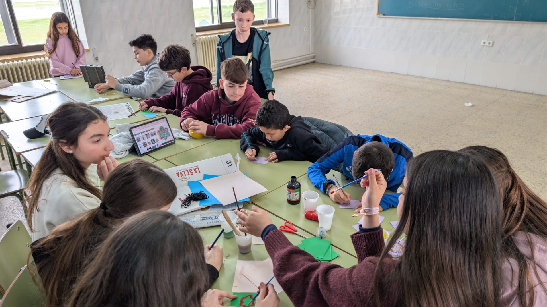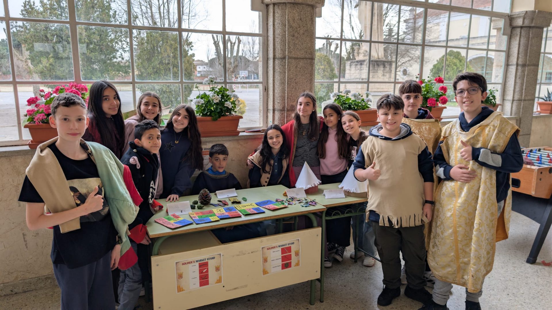 Comimos guiso de carne y albóndigas, y por la tarde, vendieron los productos que habían creado al resto de las culturas. El mercado es una actividad muy rica en la que, además, los jóvenes deben redactar en inglés y presentar ante los demás la civilización que han escogido, para así conocer más de cerca aquellas sociedades. Y para terminar la tarde, jugamos a provision hunt, un dinámico juego de exterior que les encantó.