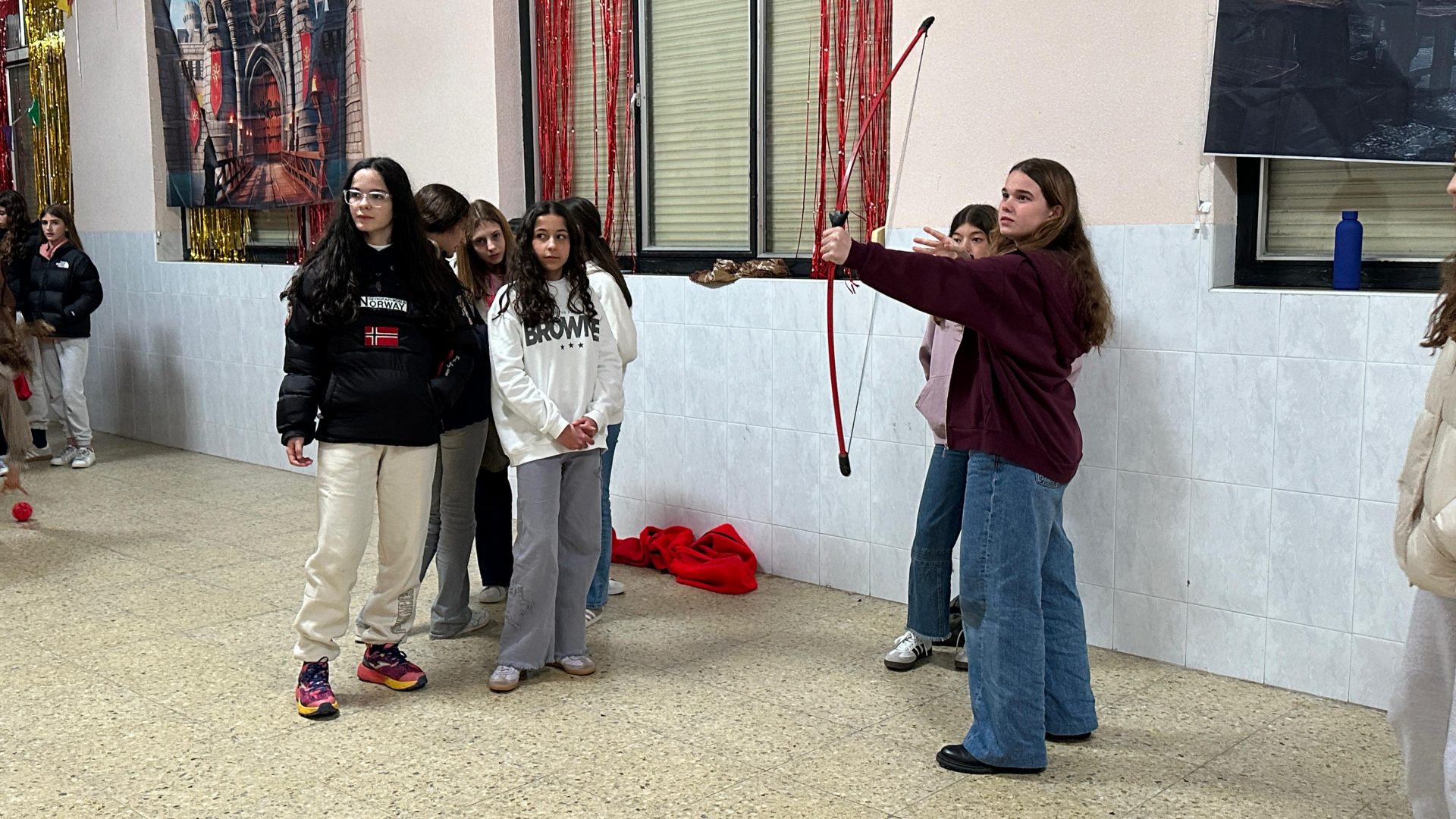 Después de cenar puré de verdura y hamburguesa, tuvo lugar la medieval fair, una actividad divertidísima en la que los jóvenes participan en minijuegos clásicos. Los más hábiles reciben buenas recompensas, ¡una dinámica perfecta para concluir un día maravilloso!