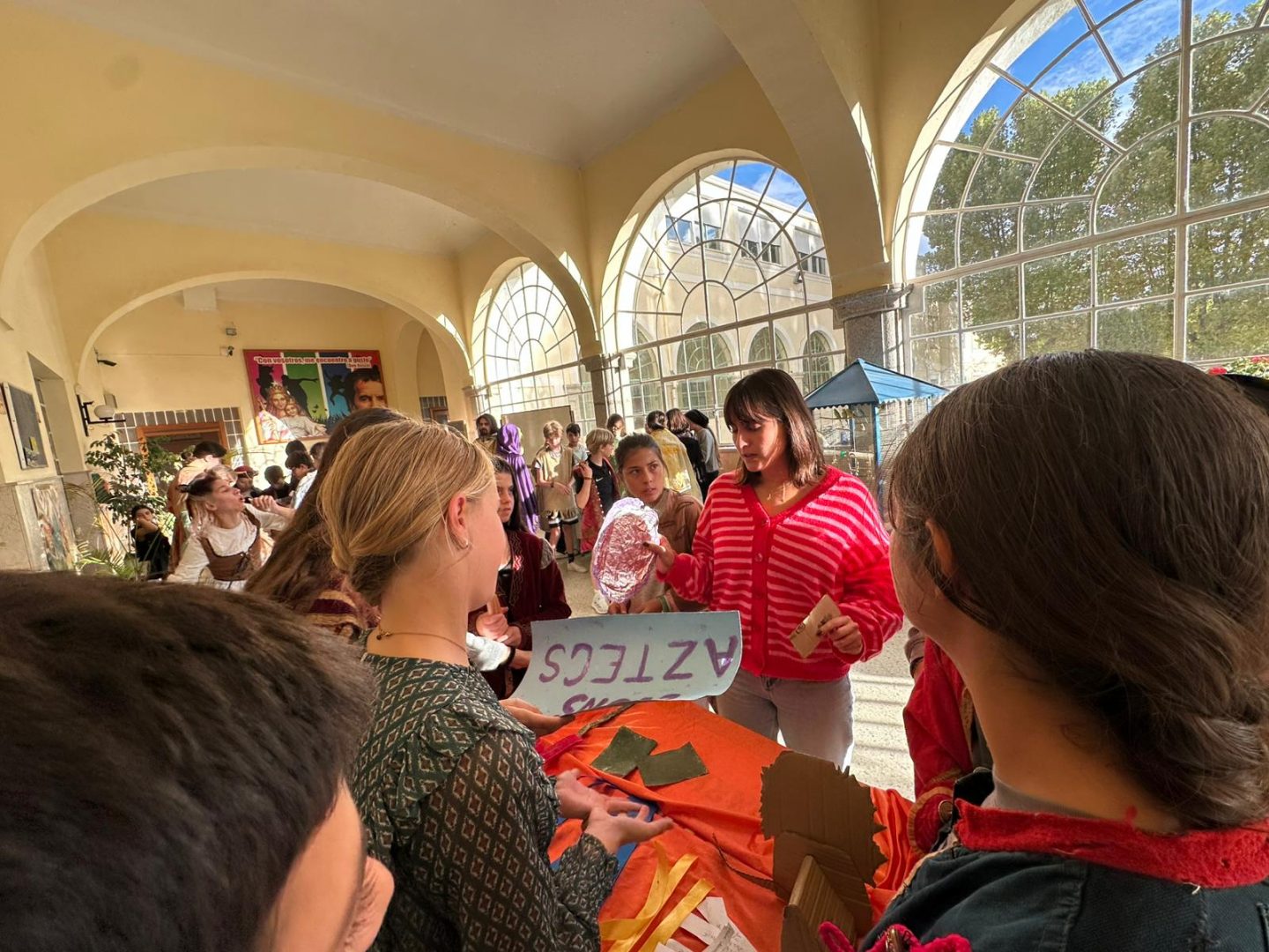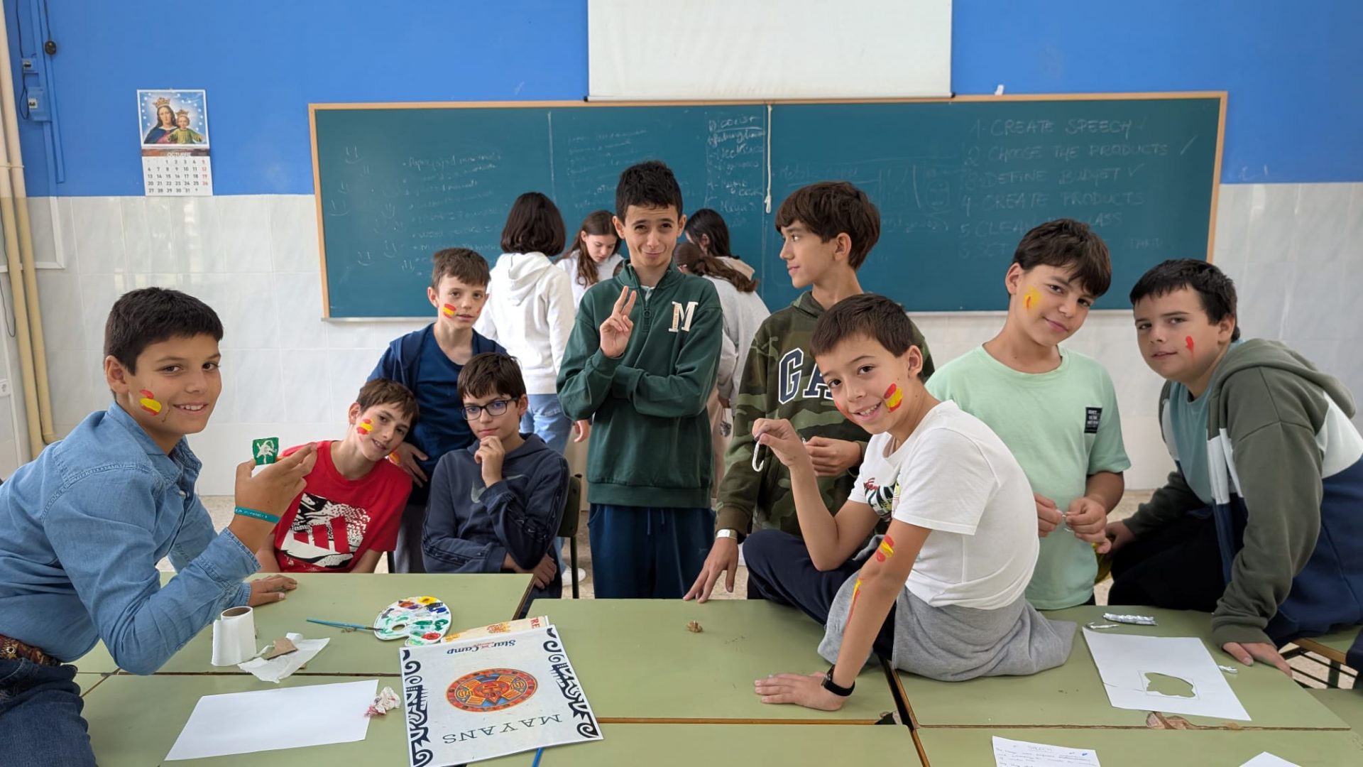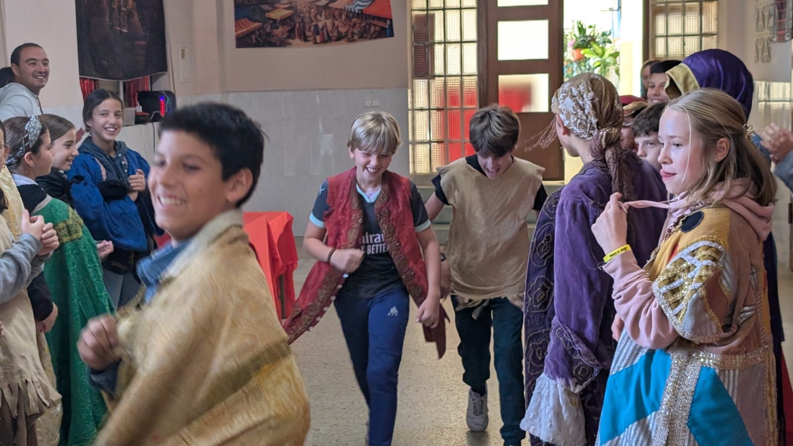 Comimos guiso de carne y albóndigas, y por la tarde, vendieron los productos que habían creado al resto de las culturas. El mercado es una actividad muy rica en la que, además, los jóvenes deben redactar en inglés y presentar ante los demás la civilización que han escogido, para así conocer más de cerca aquellas sociedades. Y para terminar la tarde, salimos a celebrar nuestra Spartan race, una carrera con multitud de pruebas físicas.