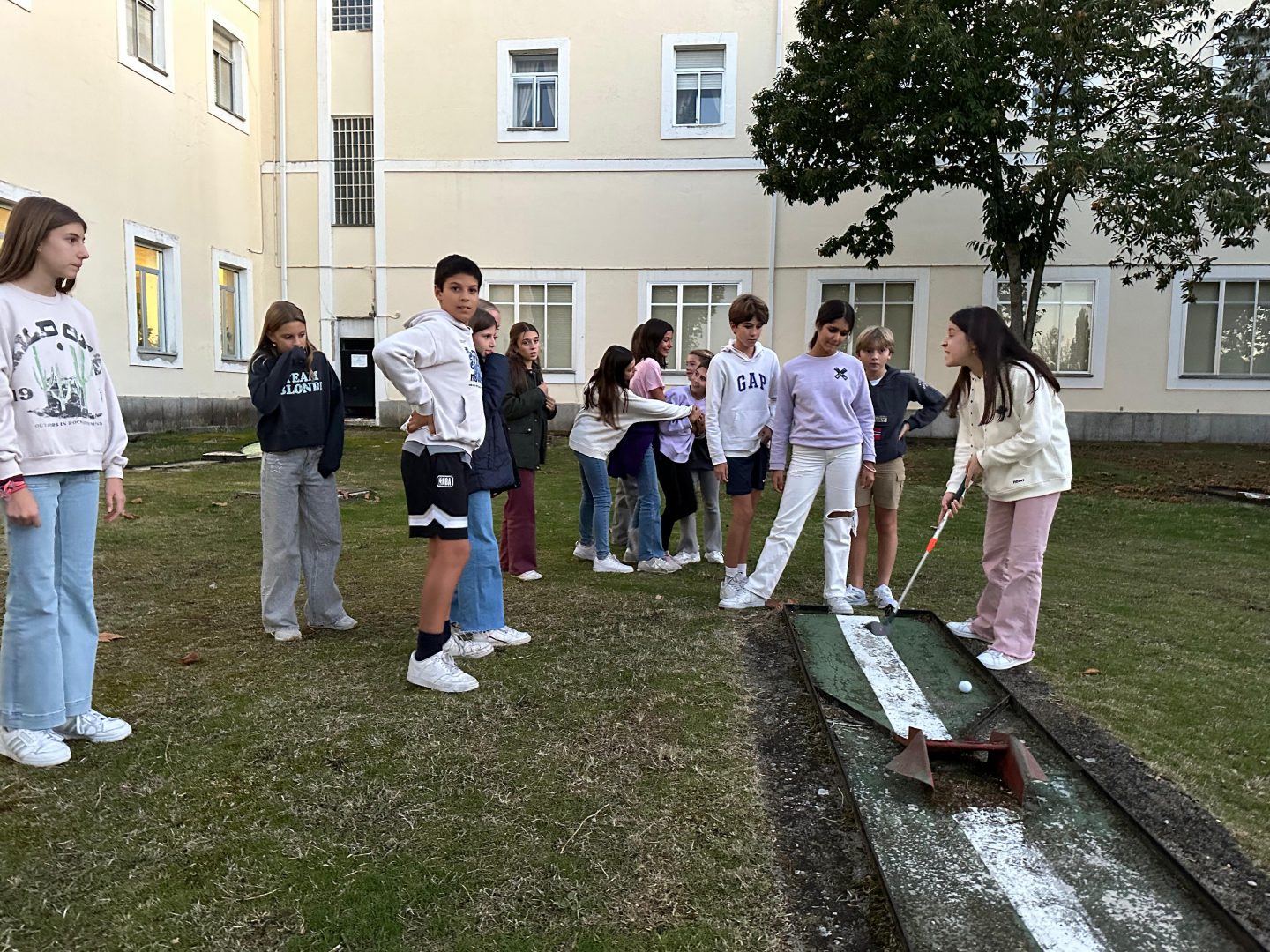 Los jóvenes se divirtieron en el campo de minigolf y comieron pasta y pollo con miel y mostaza. Durante la tarde, ahondaron en el proceso que siguió Cristóbal Colón para convencer a los Reyes Católicos de invertir en su empresa mediante juegos y dinámicas grupales. Tuvieron que dividirse en diferentes roles para dar forma a su propia empresa, y adquirir materiales que puedan ser útiles mientras vendían los suyos.