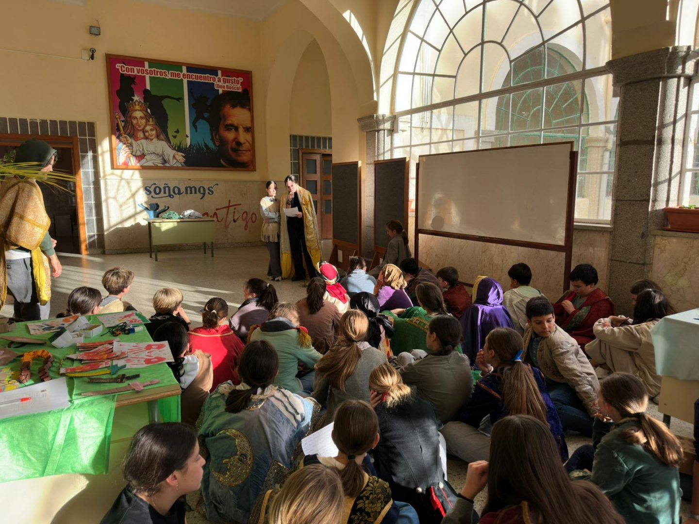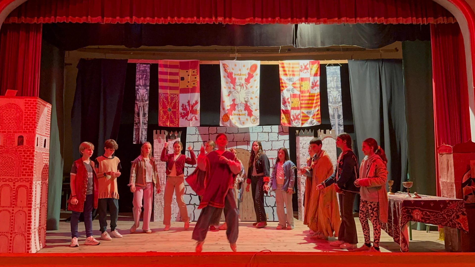 Después de cenar sopa y varitas de merluza, tuvo lugar la medieval fair, una actividad divertidísima en la que los jóvenes participan en minijuegos clásicos. Los más hábiles reciben buenas recompensas, ¡una dinámica perfecta para concluir un día maravilloso!