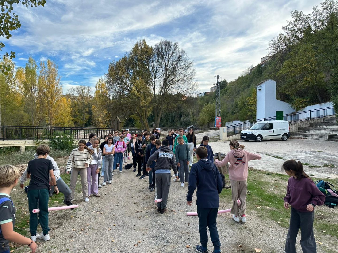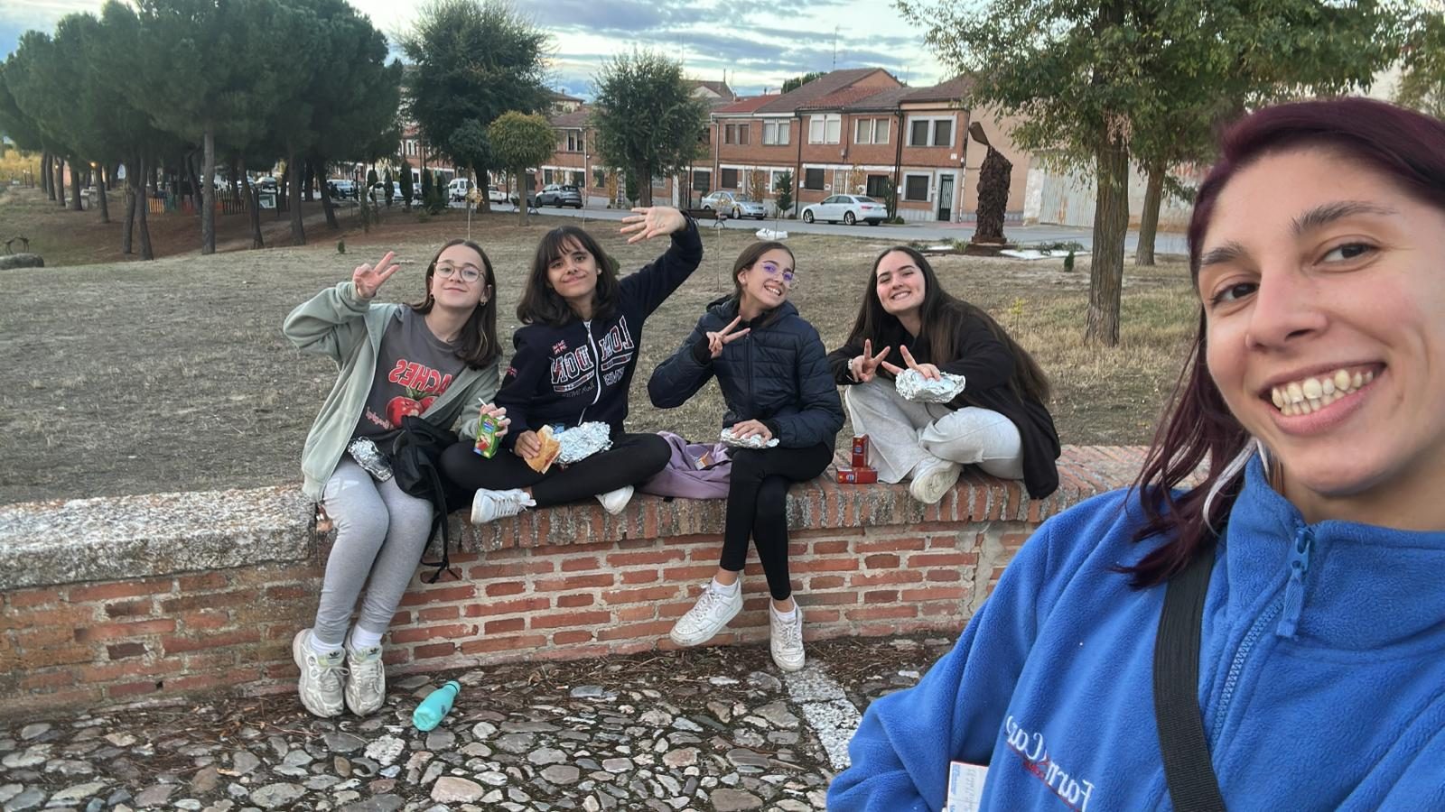 Por la tarde, fuimos a la naturaleza, y en la Ruta de los Ríos de Arévalo mezclamos los equipos para jugar un juego de mesa relacionado con el viaje de la Pinta, la Niña y la Santa María: cada grupo representaba una de las carabelas, y debían abrirse paso entre océano hasta llegar a su destino: América. Tomamos la merienda en un paraje encantador: el castillo de Arévalo.