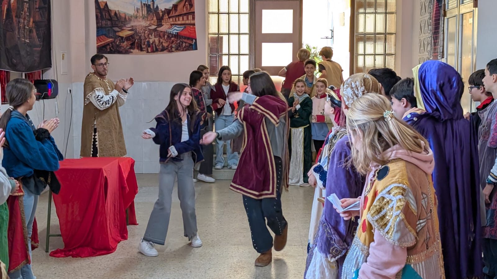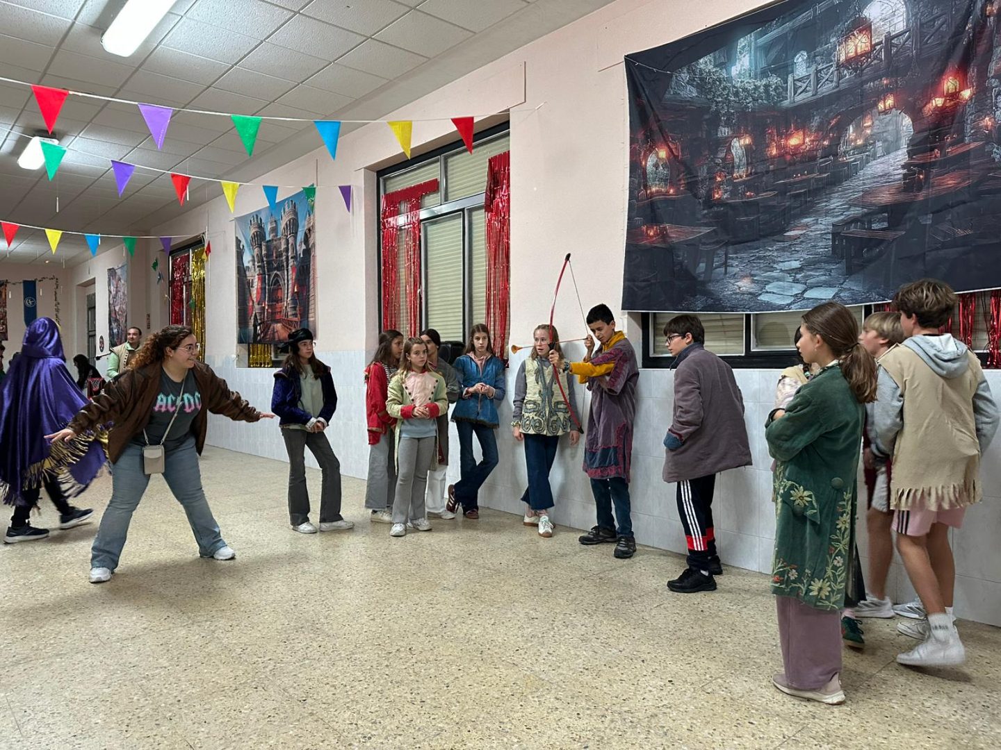 La noche puso el broche de oro al día: una cena con aire medieval —alitas de pollo barbacoa y nachos con queso— y, para terminar, todos se vistieron para disfrutar del show y la discoteca final, una fiesta llena de música, baile y sonrisas que cerró esta jornada inolvidable.
